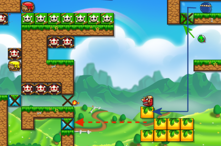 Get the green color and release the rolling skull after